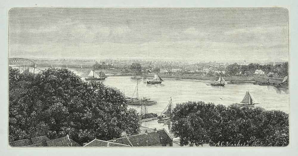 Gezicht vanaf Belvedere op de Waal, met Lent en de s...