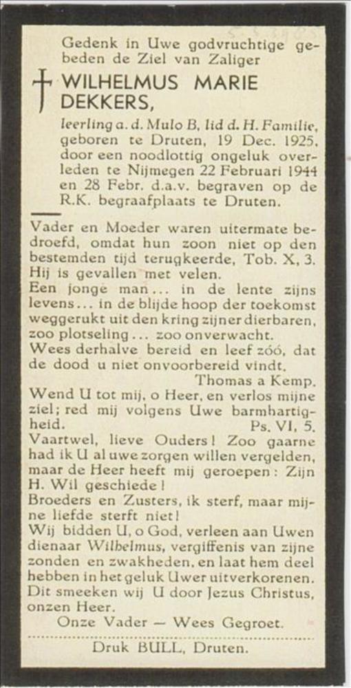 bidprentje (kopie) Wilhelmus Marie Dekkers "Geboren ...
