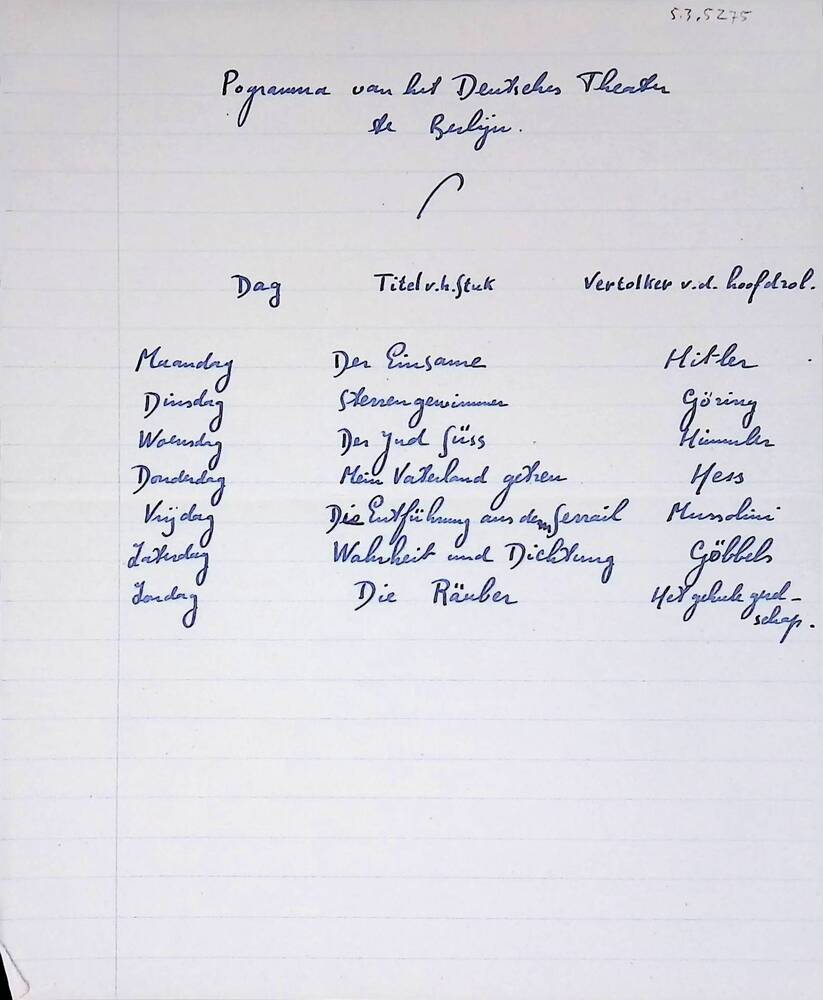 Vel met handgeschreven tekst: "Programma van het Deu...