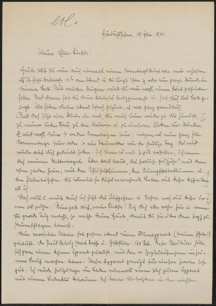 Brief van Hubert aan Ella d.d. 19-01-1941