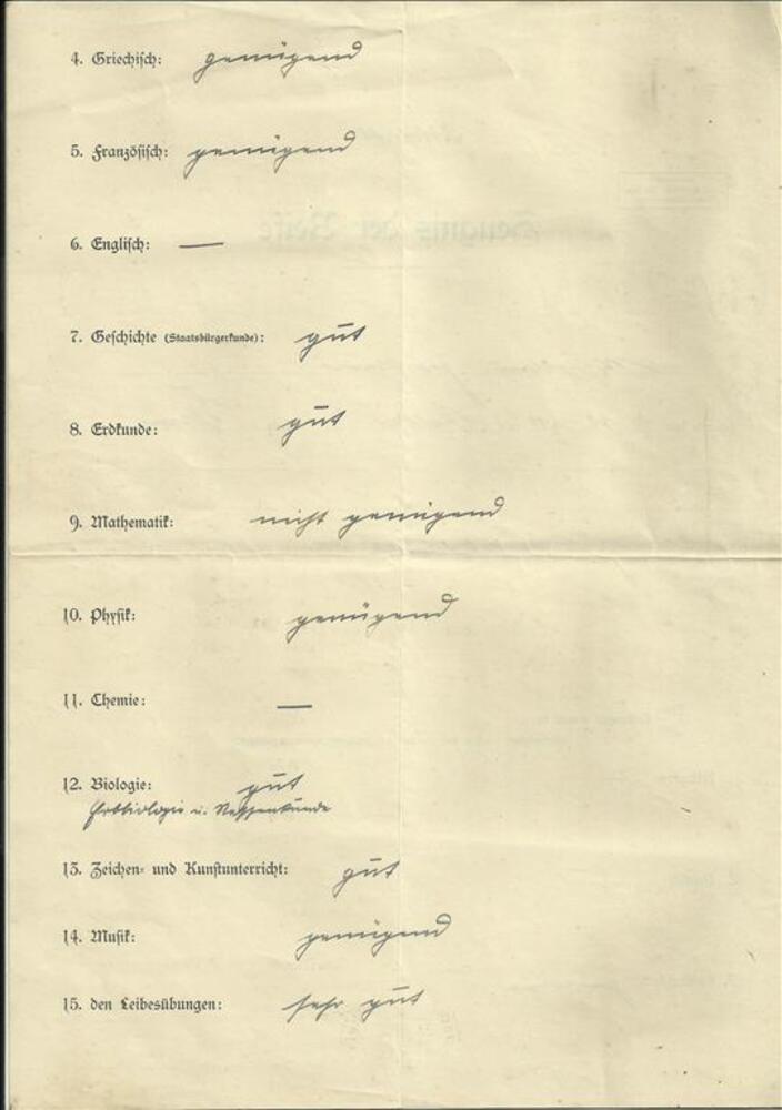 Zeugnis der Reife betreffende Wilhelm Joosten