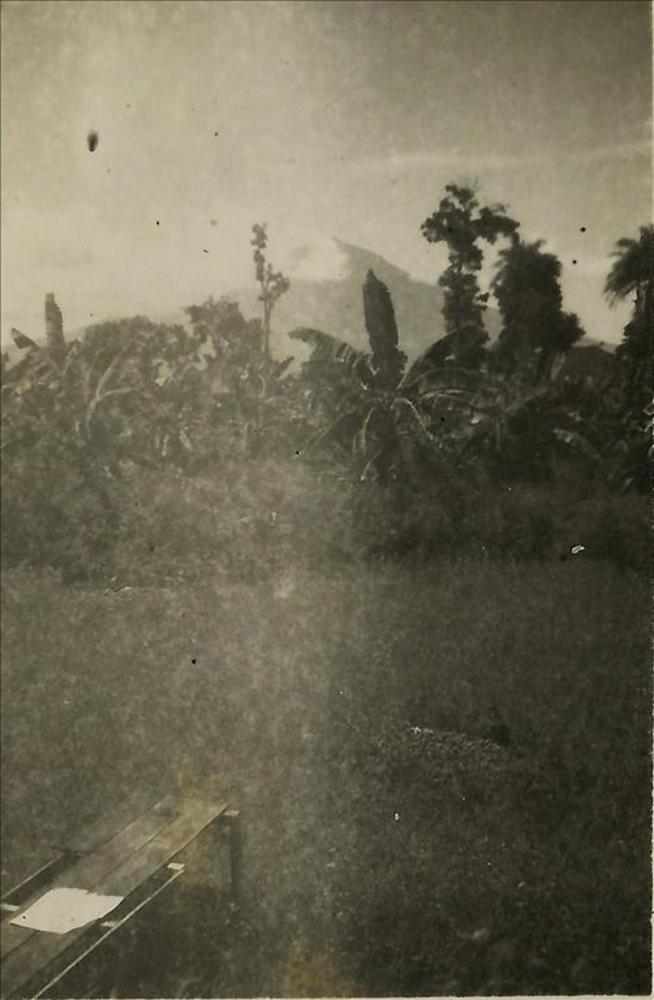 Nederlands Indië; palmboom, vulkaan