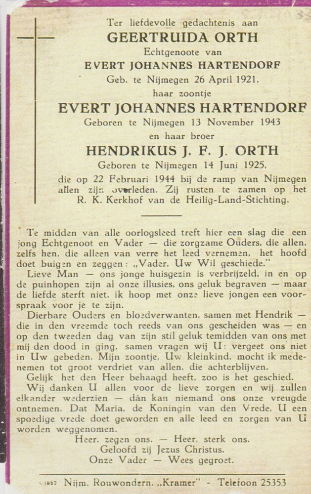 bidprentje (copie) Geertruida Hartendorf-Orth, Evert...
