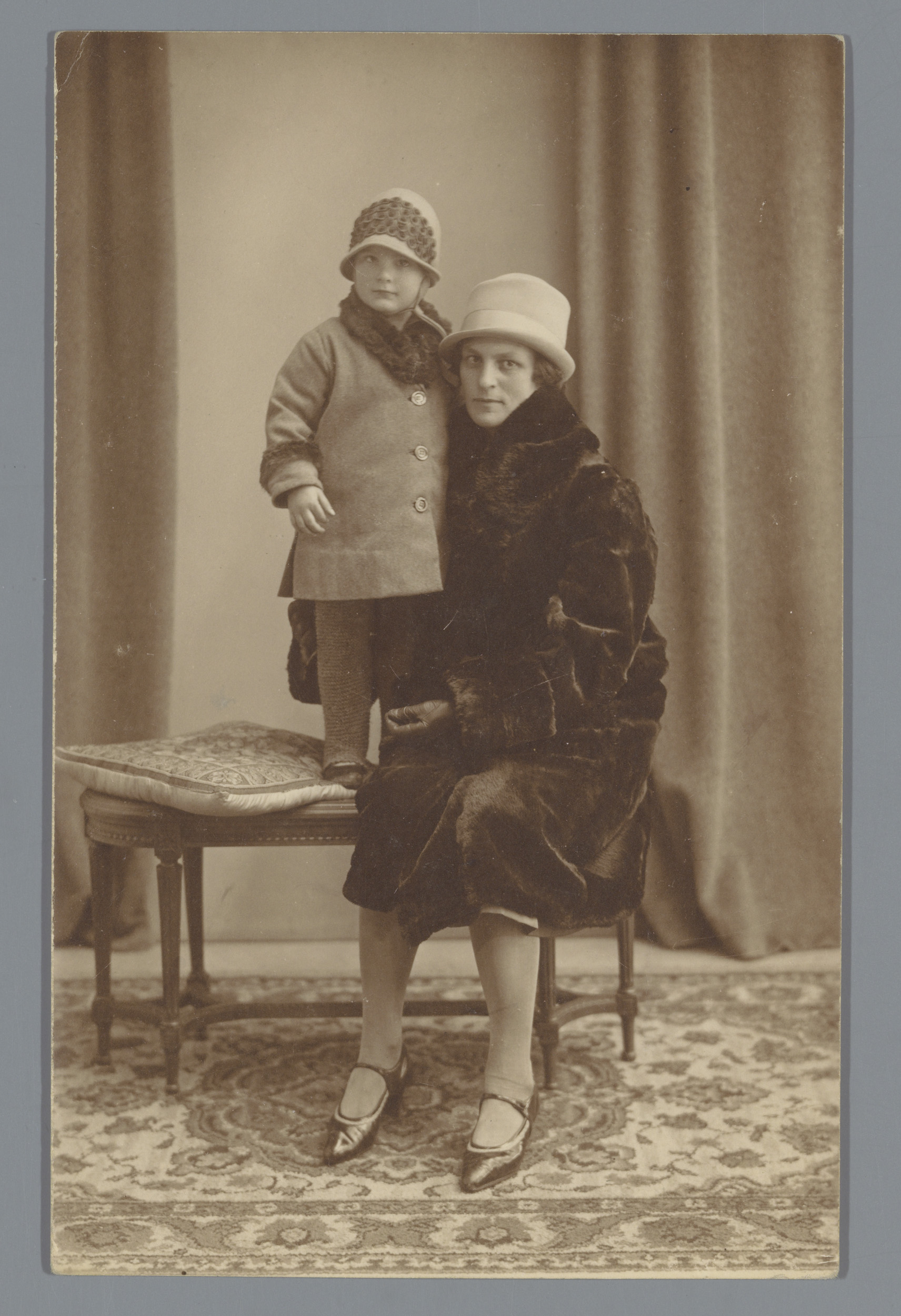 Portret van twee onbekende vrouwen en een kind in ee...