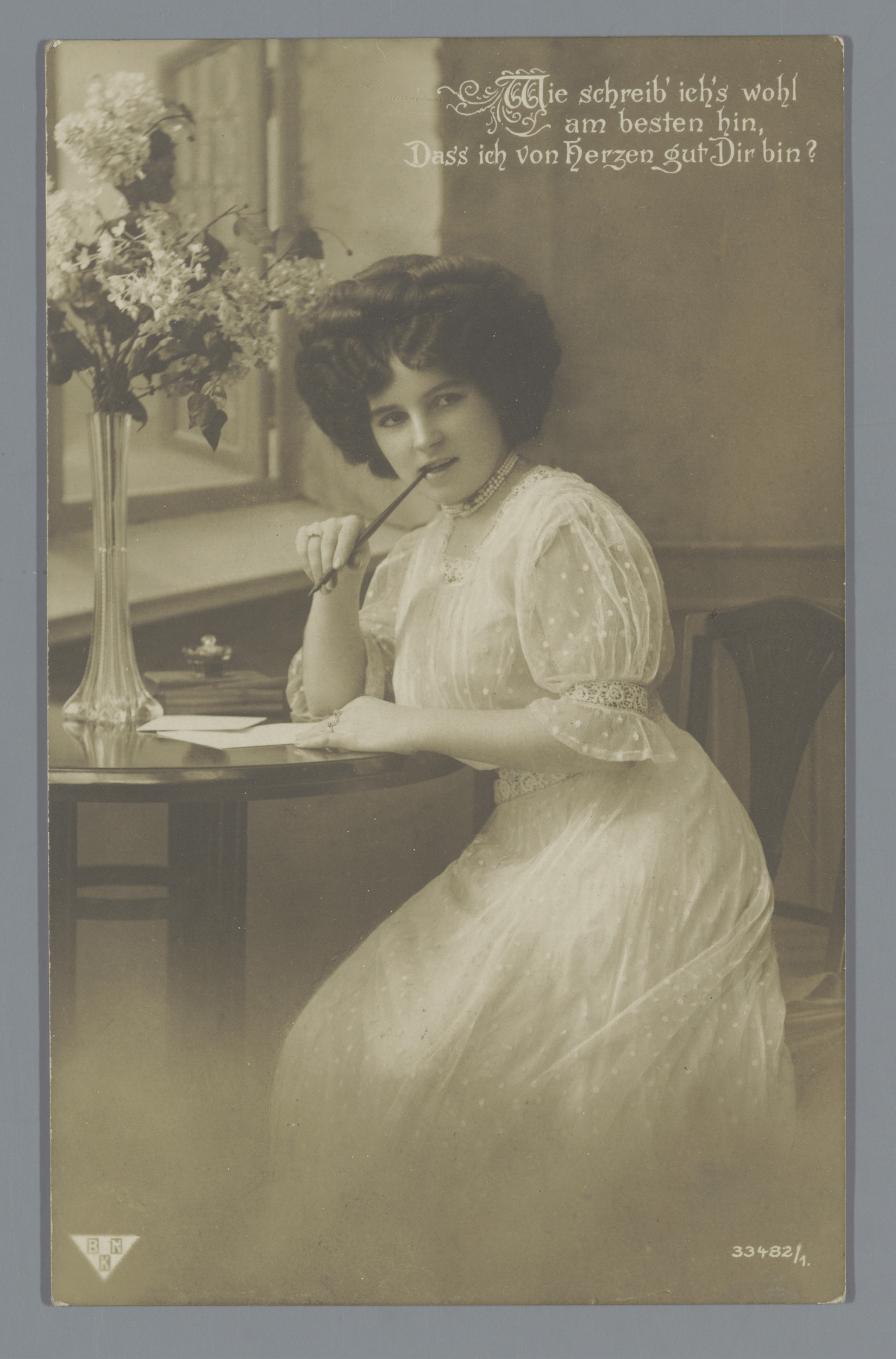 Portret van een onbekende vrouw aan een schrijftafel