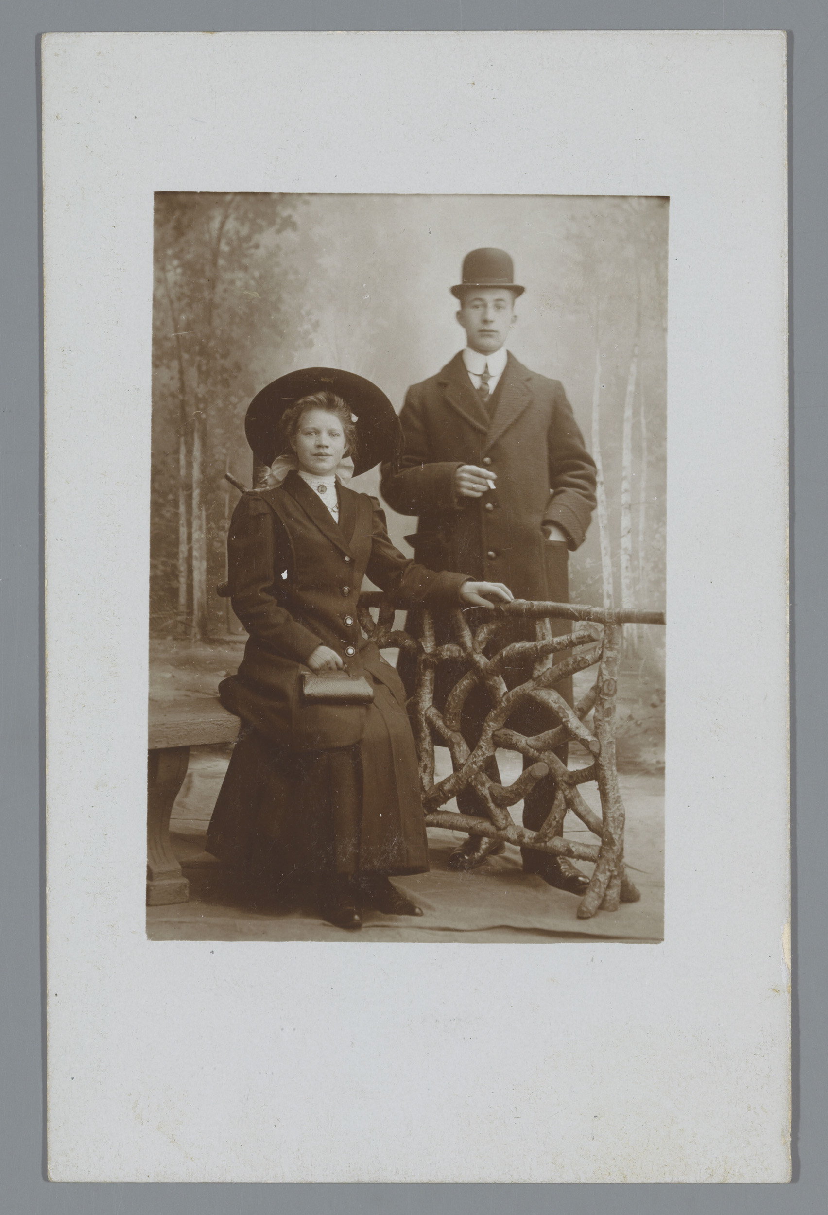 Studioportret van een onbekende man en vrouw