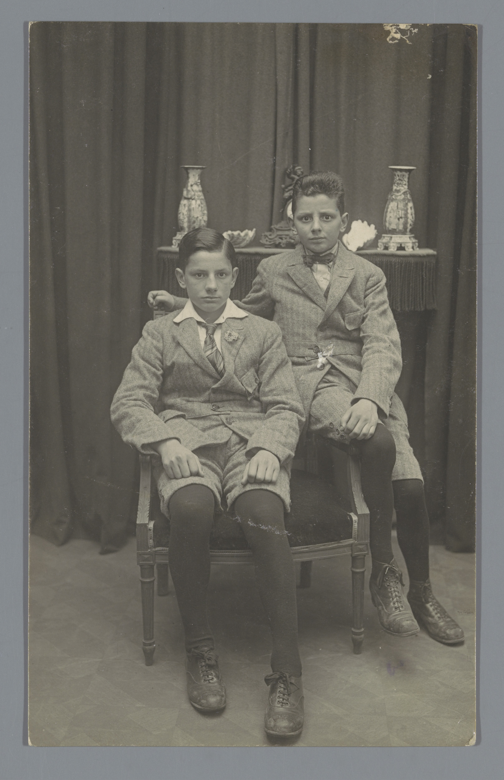 Portret van twee onbekende jongens, met op de achter...