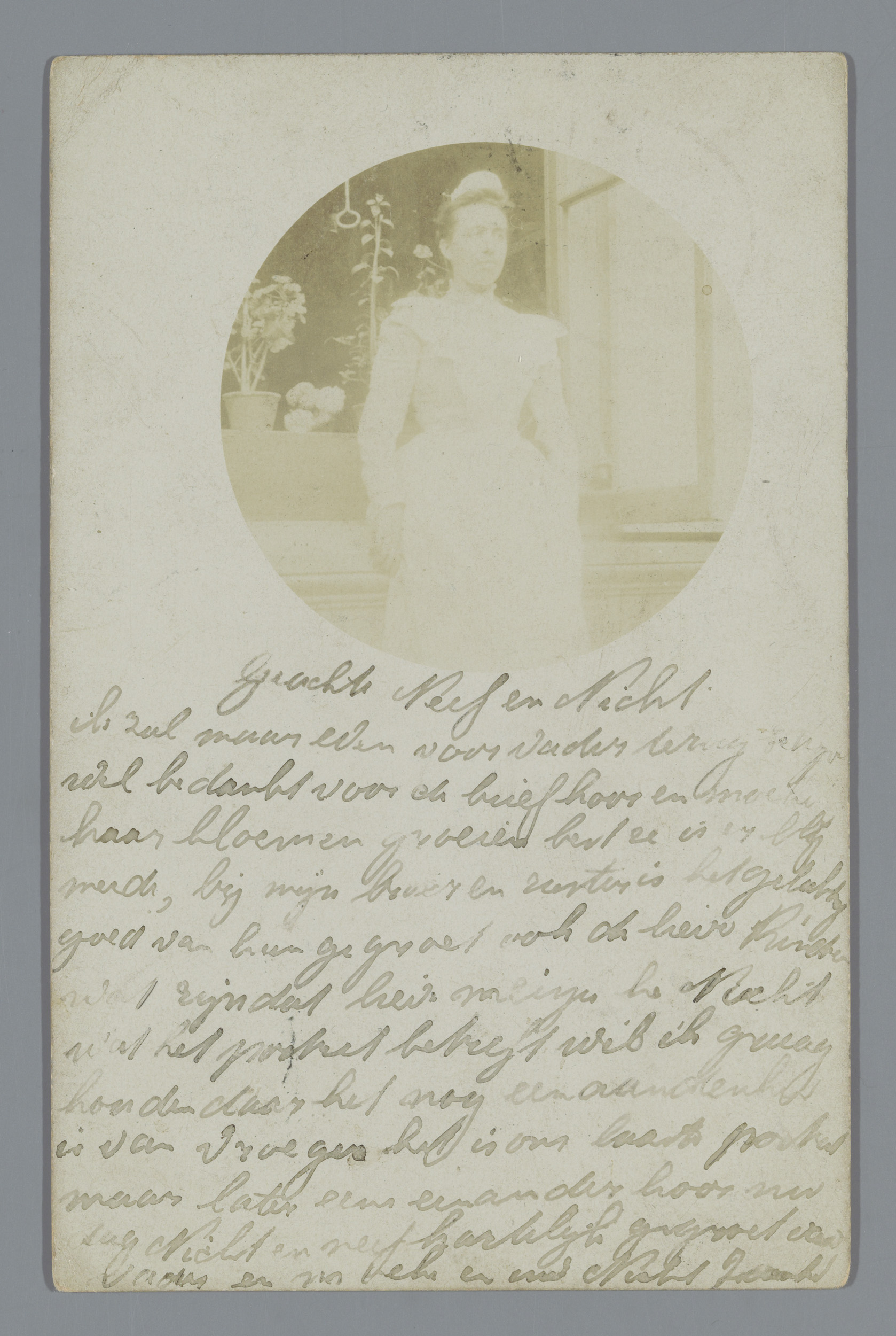 Studioportret van een onbekende vrouw met (vermoedel...