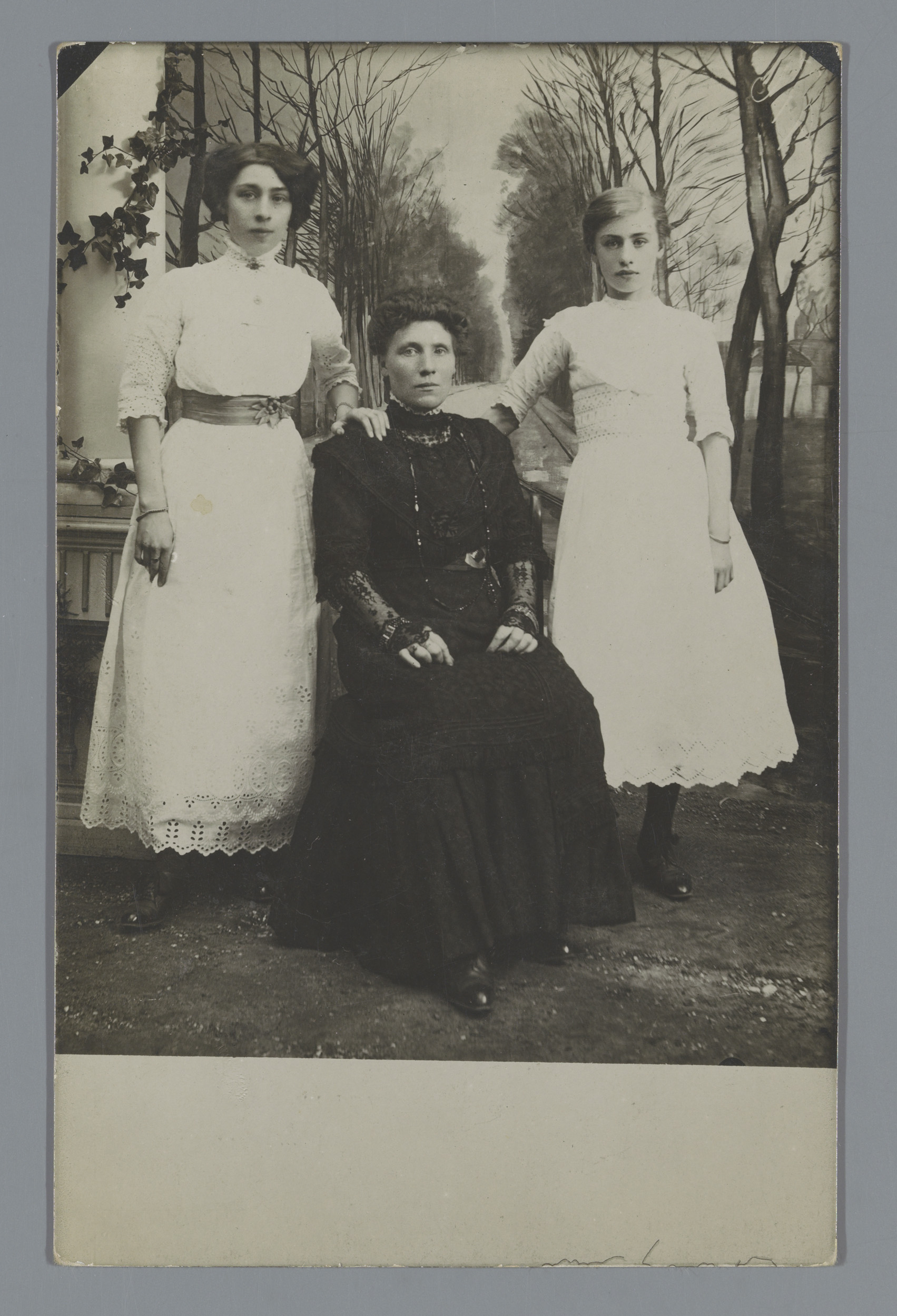 Studioportret van drie onbekende vrouwen
