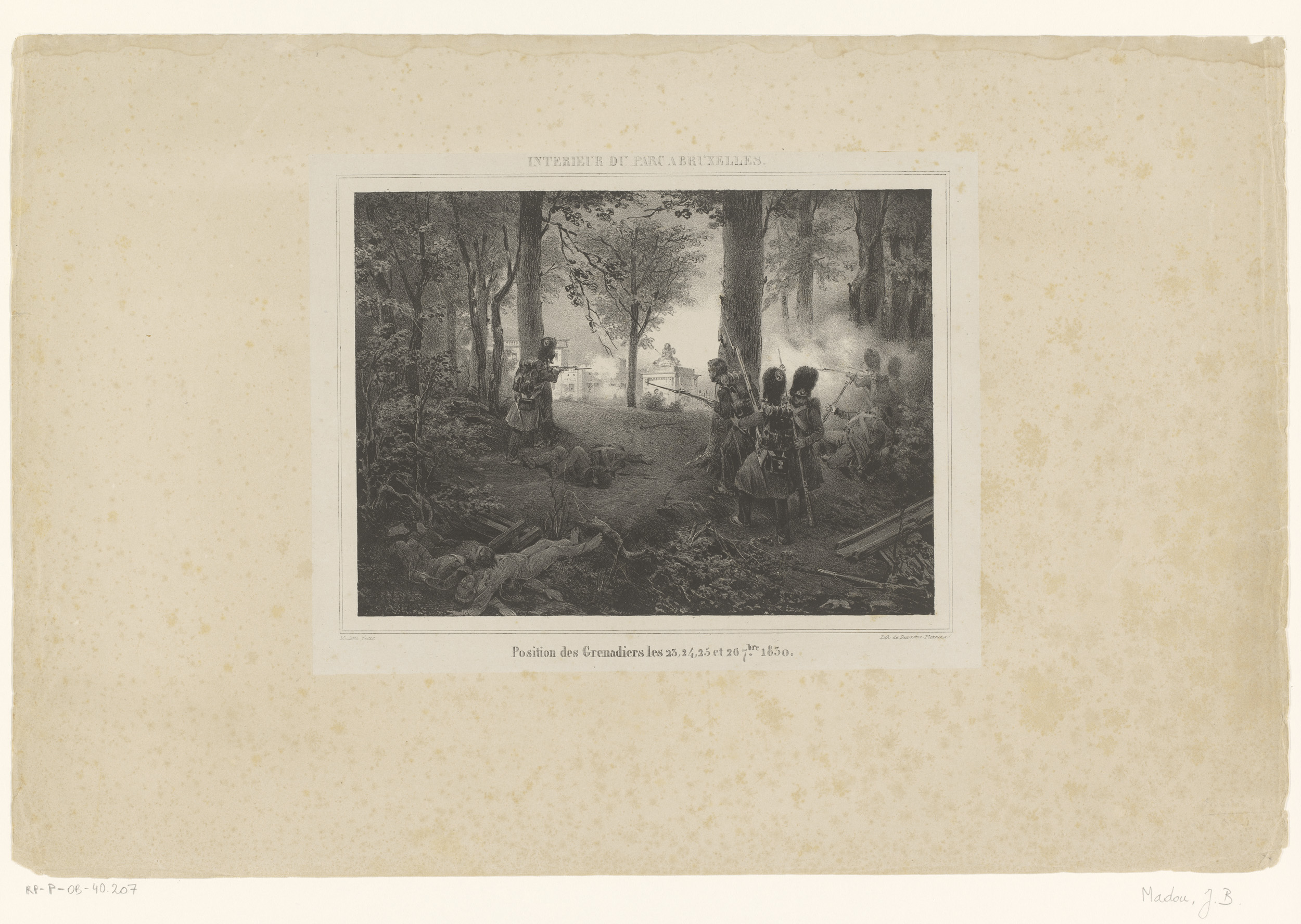 Grenadiers schieten vanuit het Warandepark te Brusse...