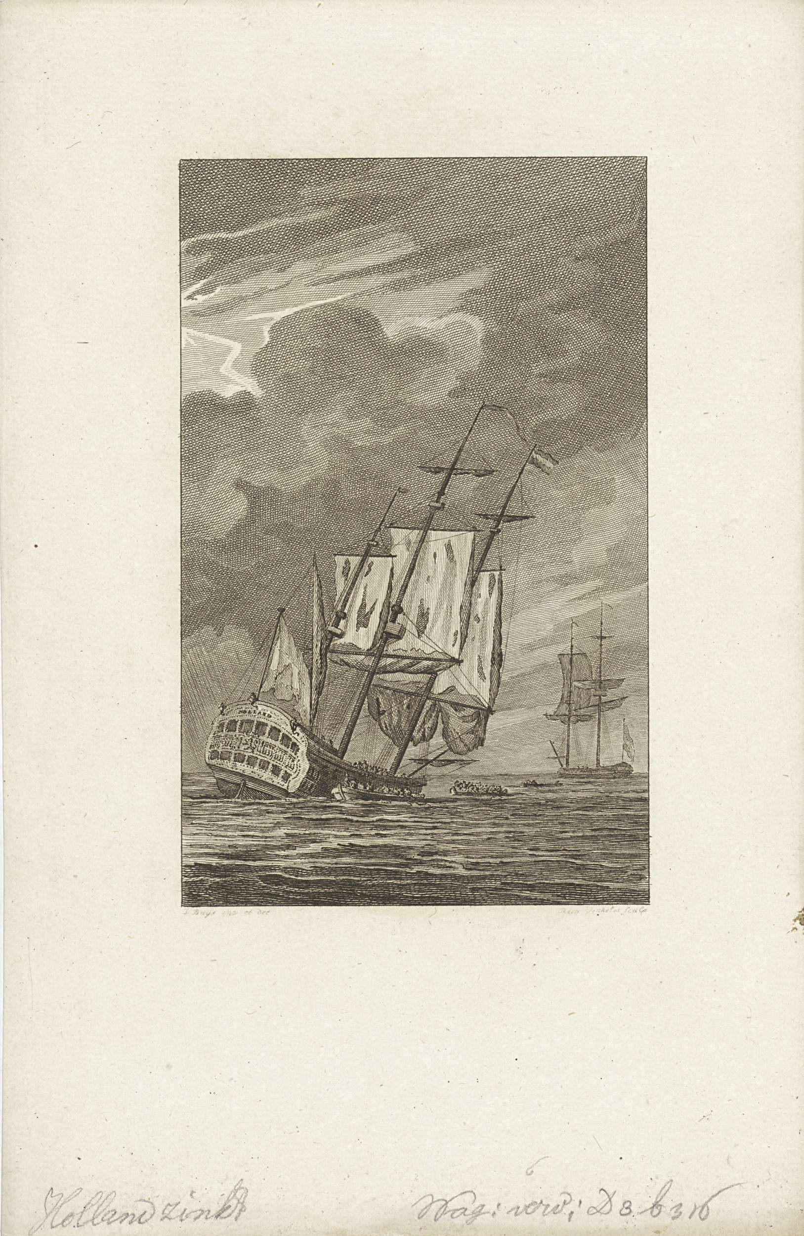 Het zinkende schip Holland, 1781