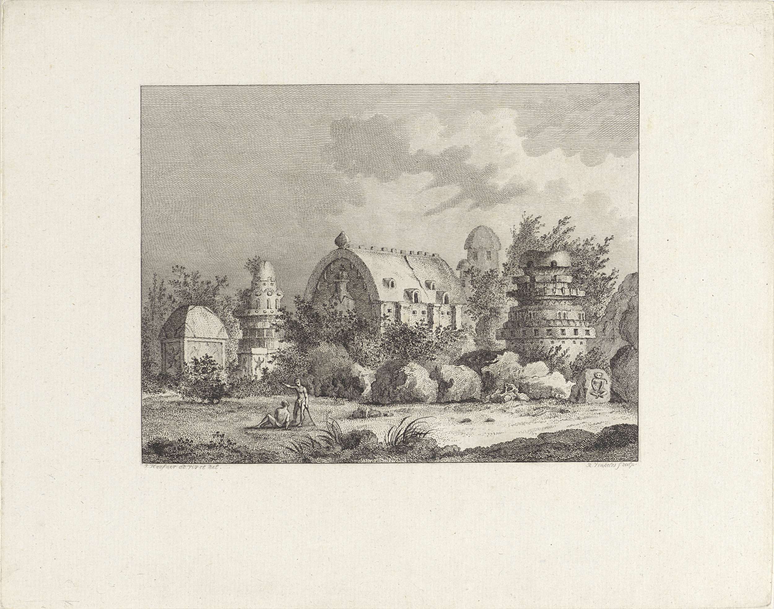 Twee mannen voor tempelruïne