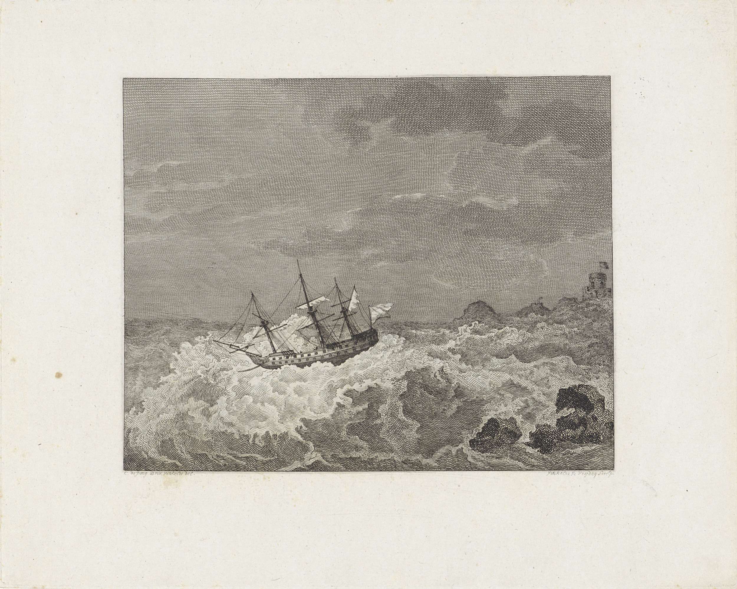 Schip in storm op zee