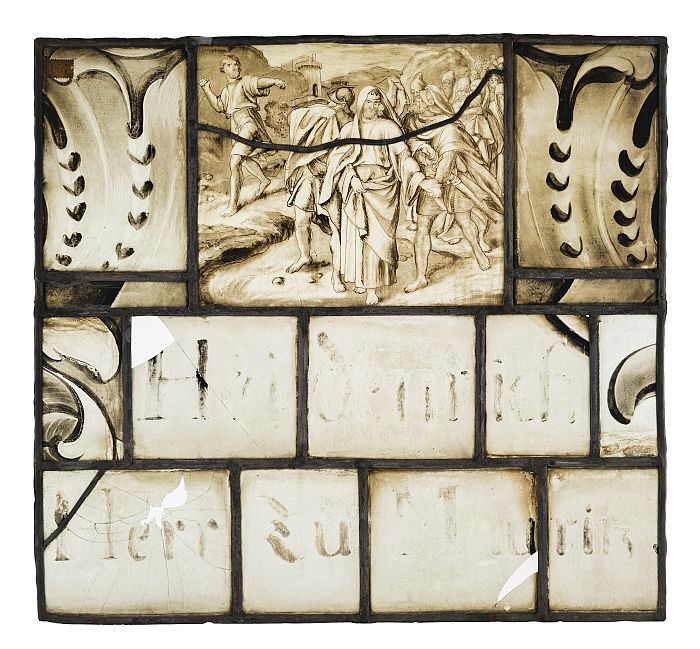 Deel van getoogd glas-in-loodraam Stieltjeskerk, met...