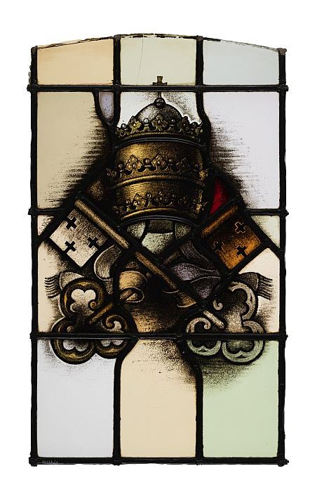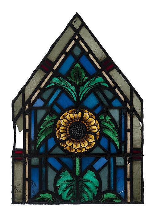 Deel van glas-in-loodraam Petruskerk, met puntvormig...