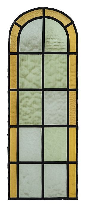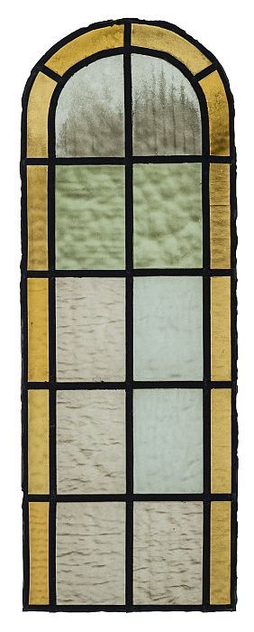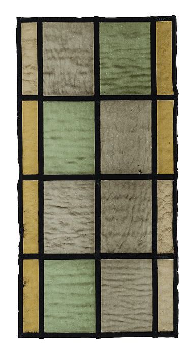 Zes onderdelen van een glas-in-loodraam in groen en ...