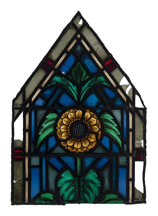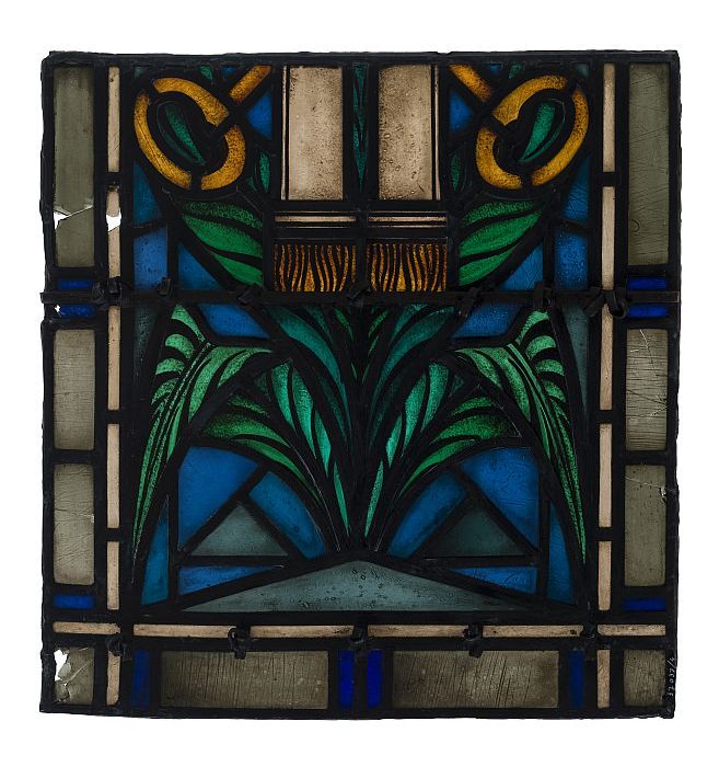 Deel van glas-in-loodraam Petruskerk, met groene pla...