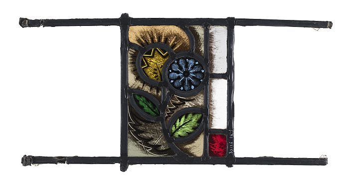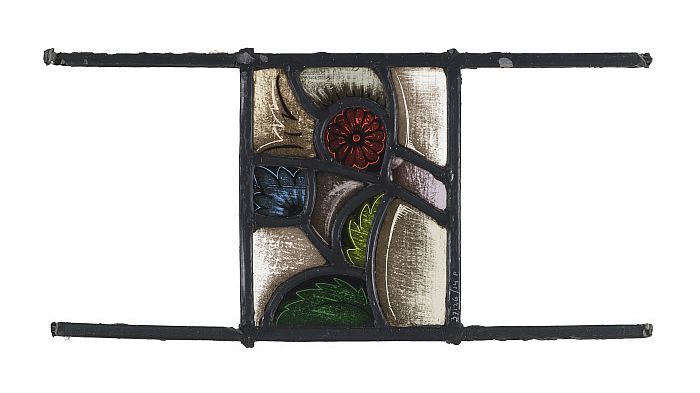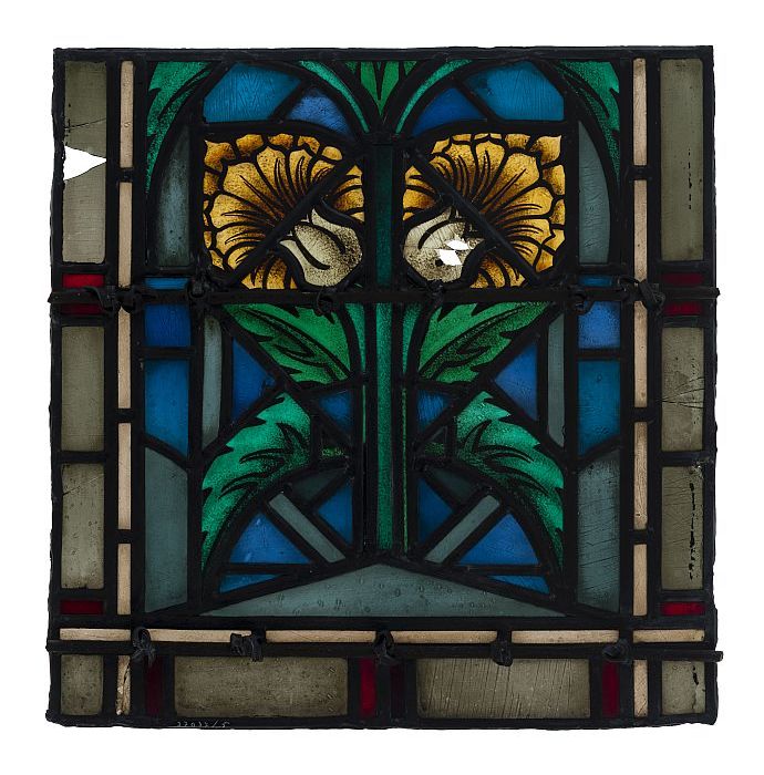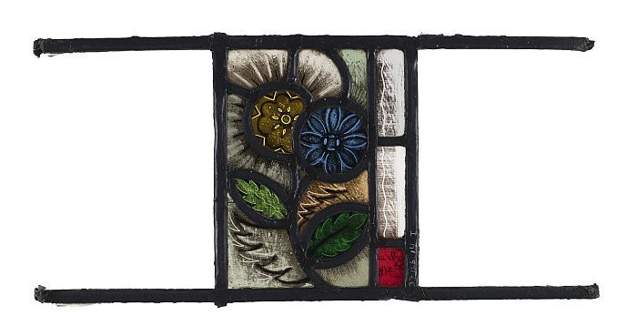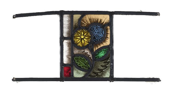 Getoogd glas-in-loodraam met bloemen en golfjes, mid...