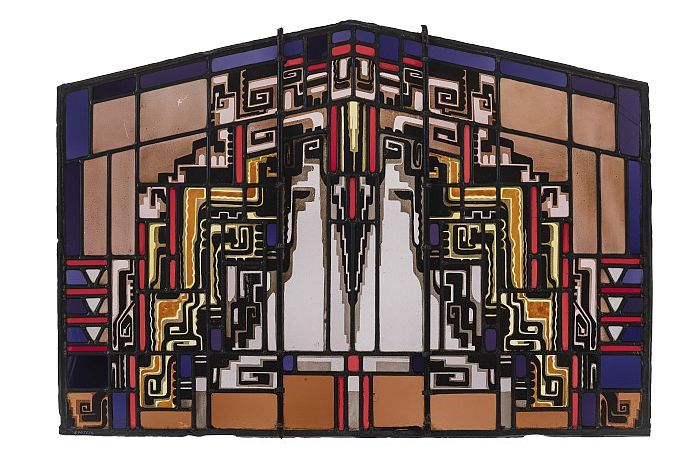 Symmetrisch Art Deco glas-in-loodraam met punt naar ...