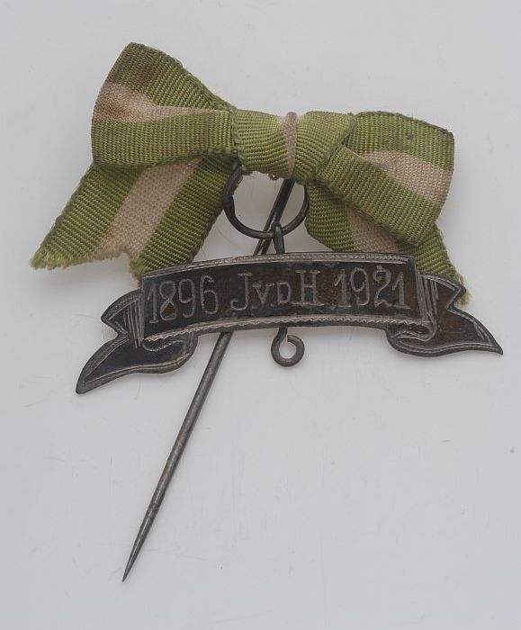 Speld met groen-wit-groen strik en recht plaatje, "1...