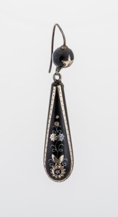 Paar zilveren oorbellen met zwarte stenen
