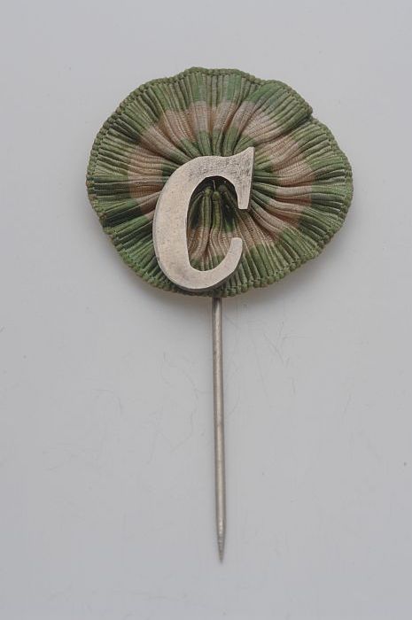 Speld met groen-wit-groen lint en letter "C"