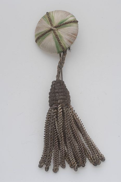 Speld aan groen-wit-groene knoop met kwastjes