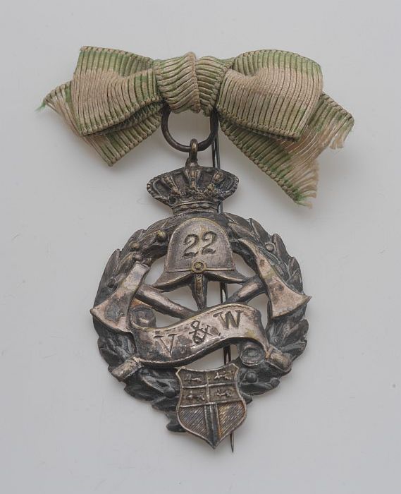 Speld aan groen-wit-groen lint, banier met brandweer...