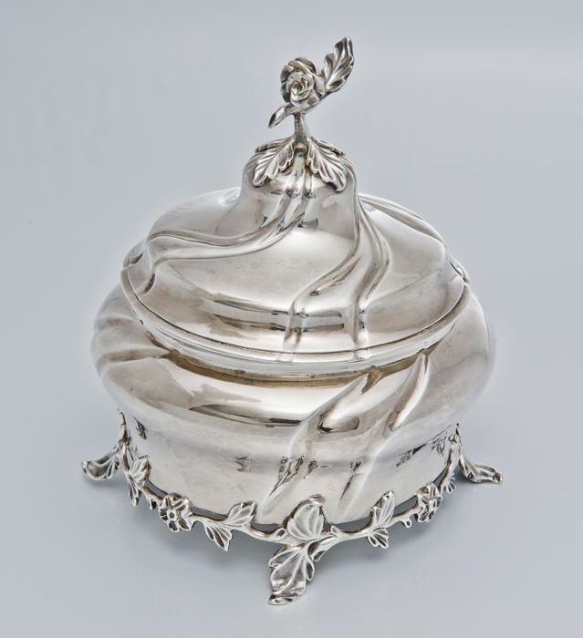 Ronde zilveren tabakspot van het Chirurgijnsgilde, m...