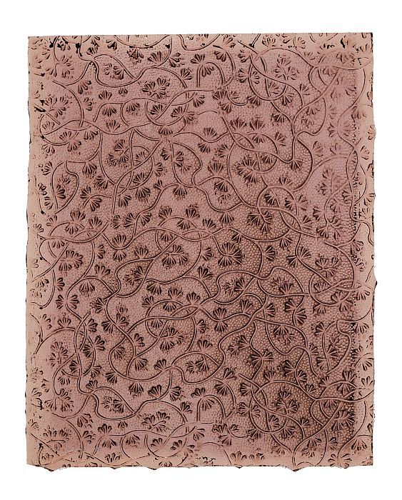 Half glas-in-loodraam met bloemen en golfjes, linker...