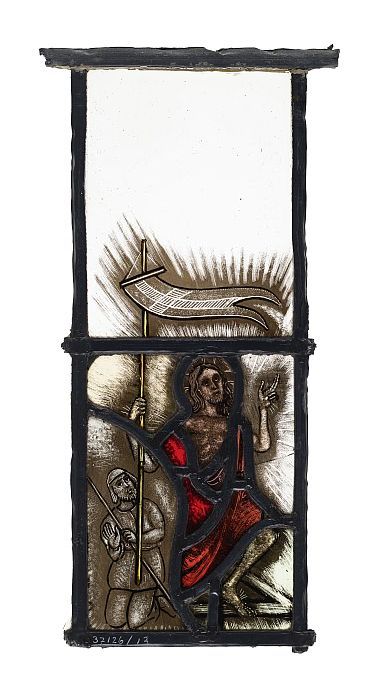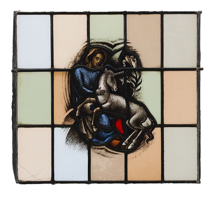 Getoogd glas-in-loodraam met een voorstelling van he...