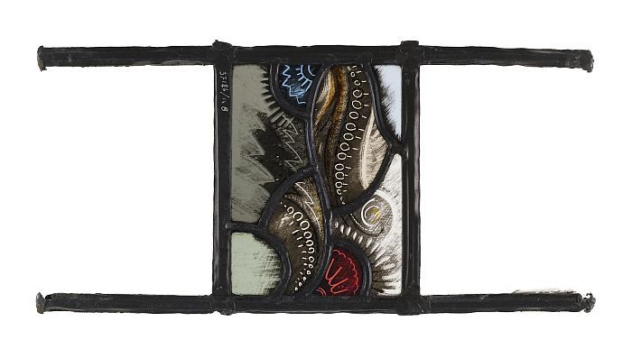 Vierkant glas-in-loodraam met verschillende gekleurd...