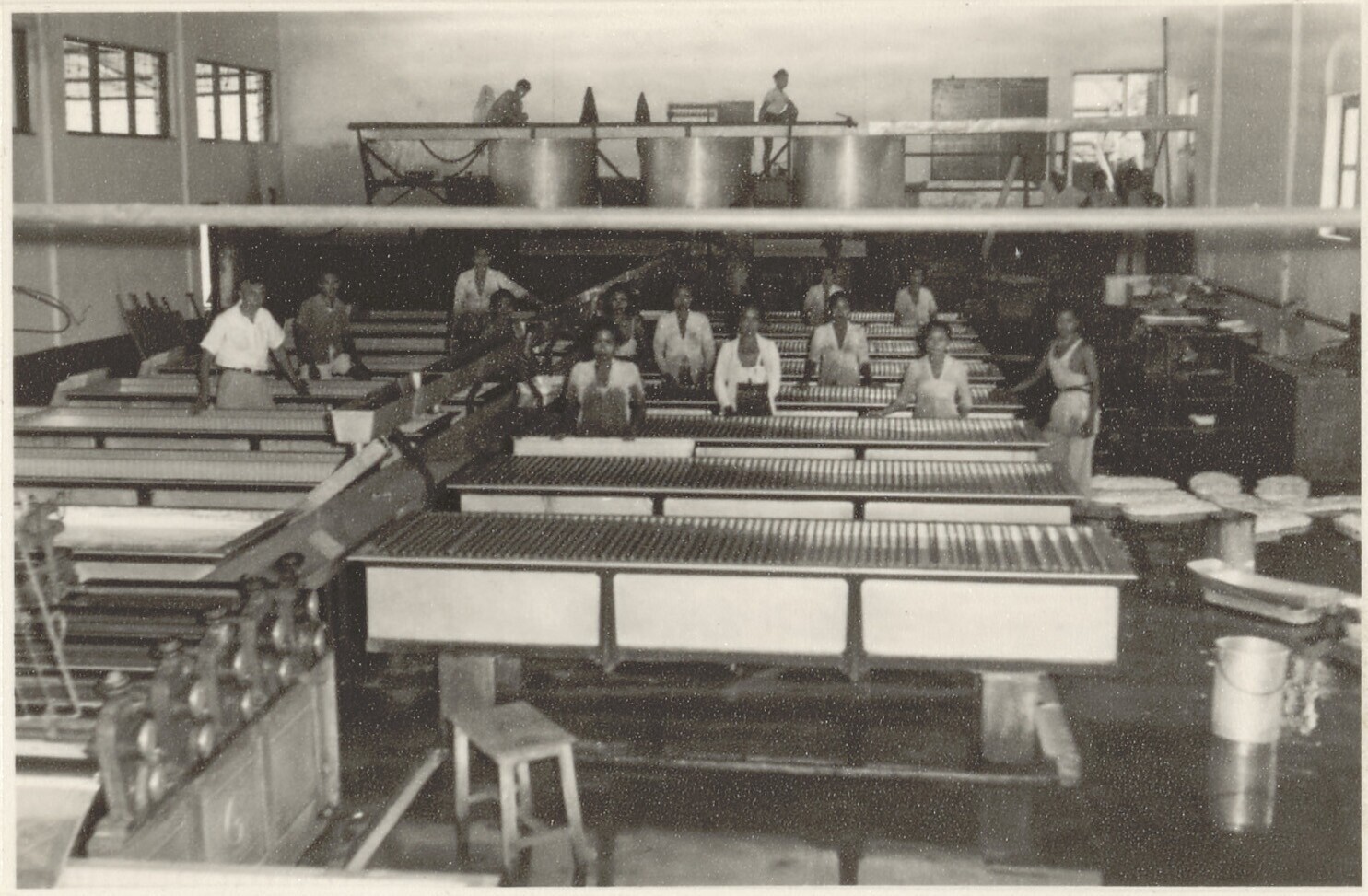 Bedrijfsmedewerkers bij de bulking- en coagulatietan...