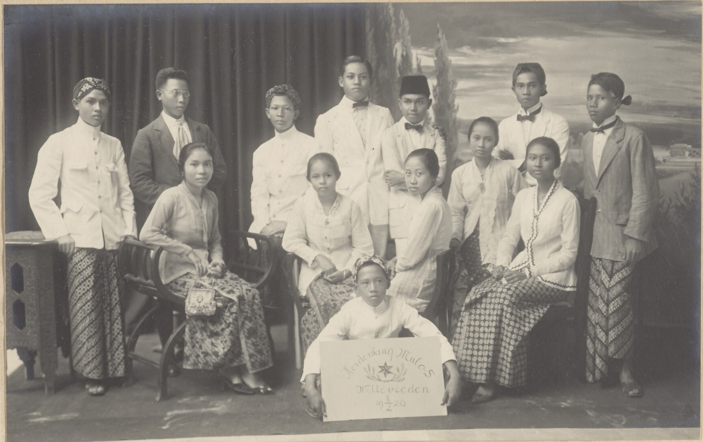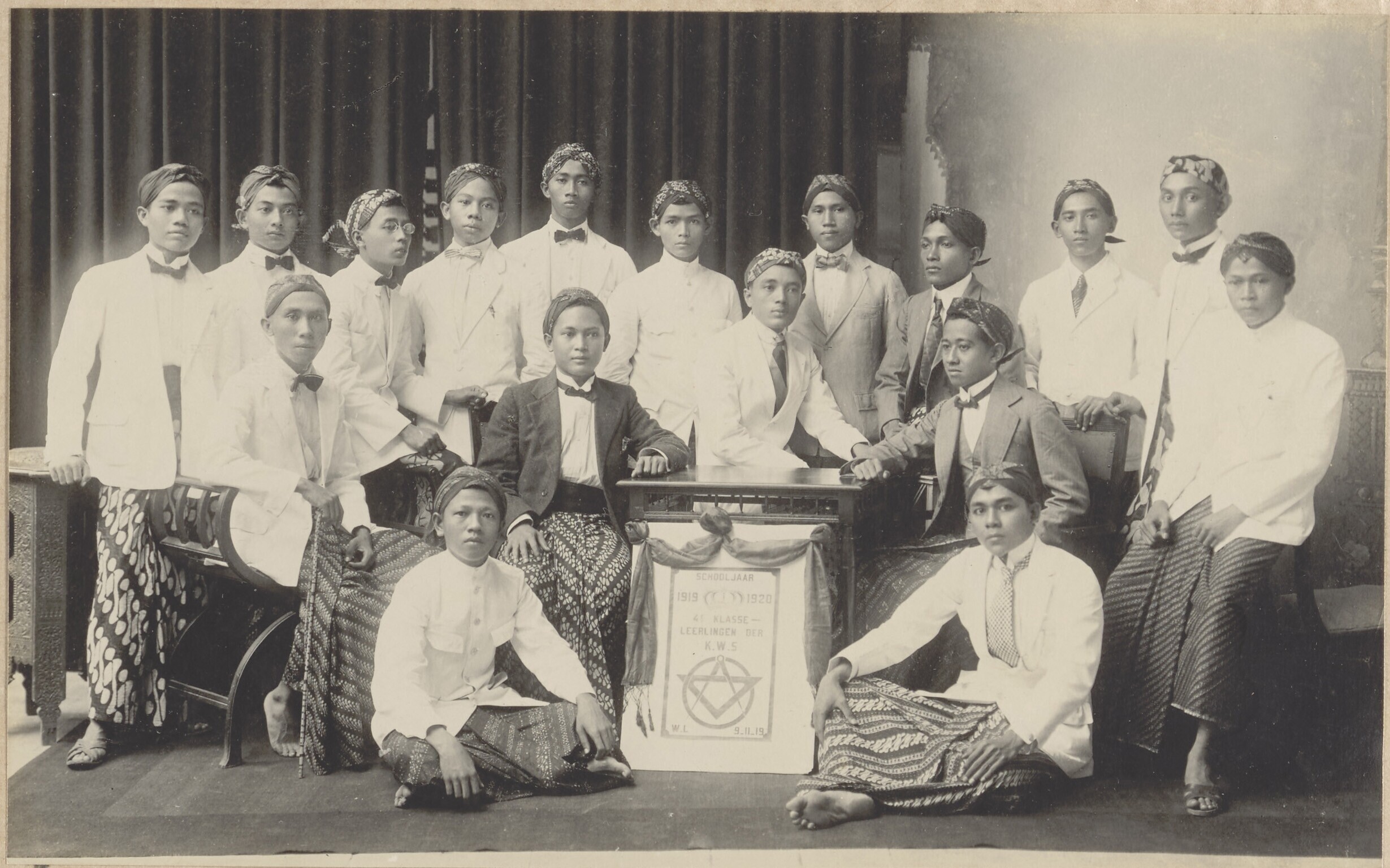 Groepsportret van leerlingen van MULO 5 Weltevreden,...