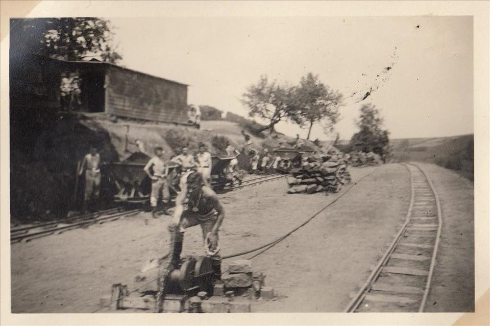 Foto van een emplacement met twee sporen en en lier ...
