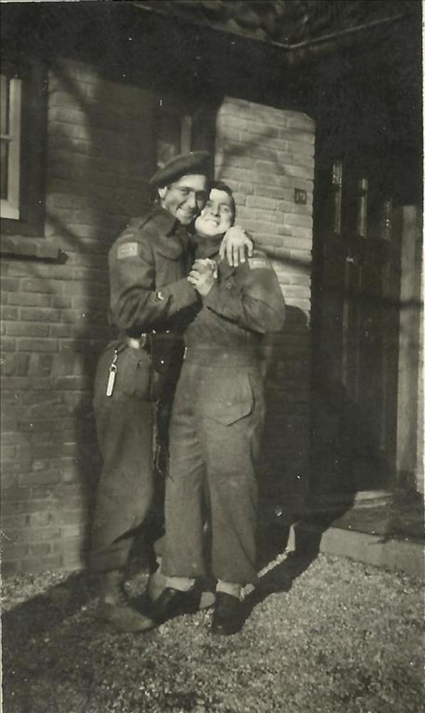 Twee militairen, gespeelde omhelzing