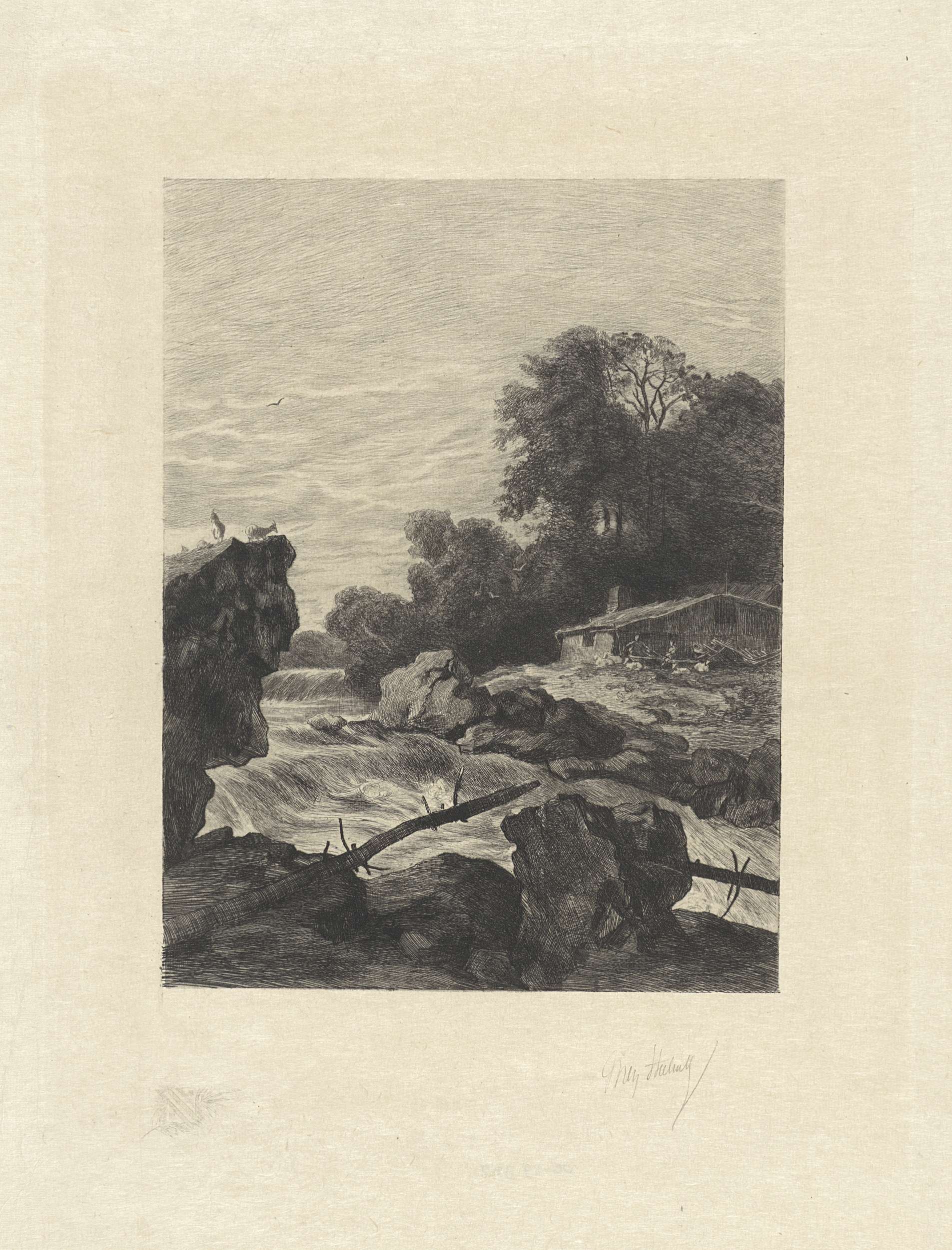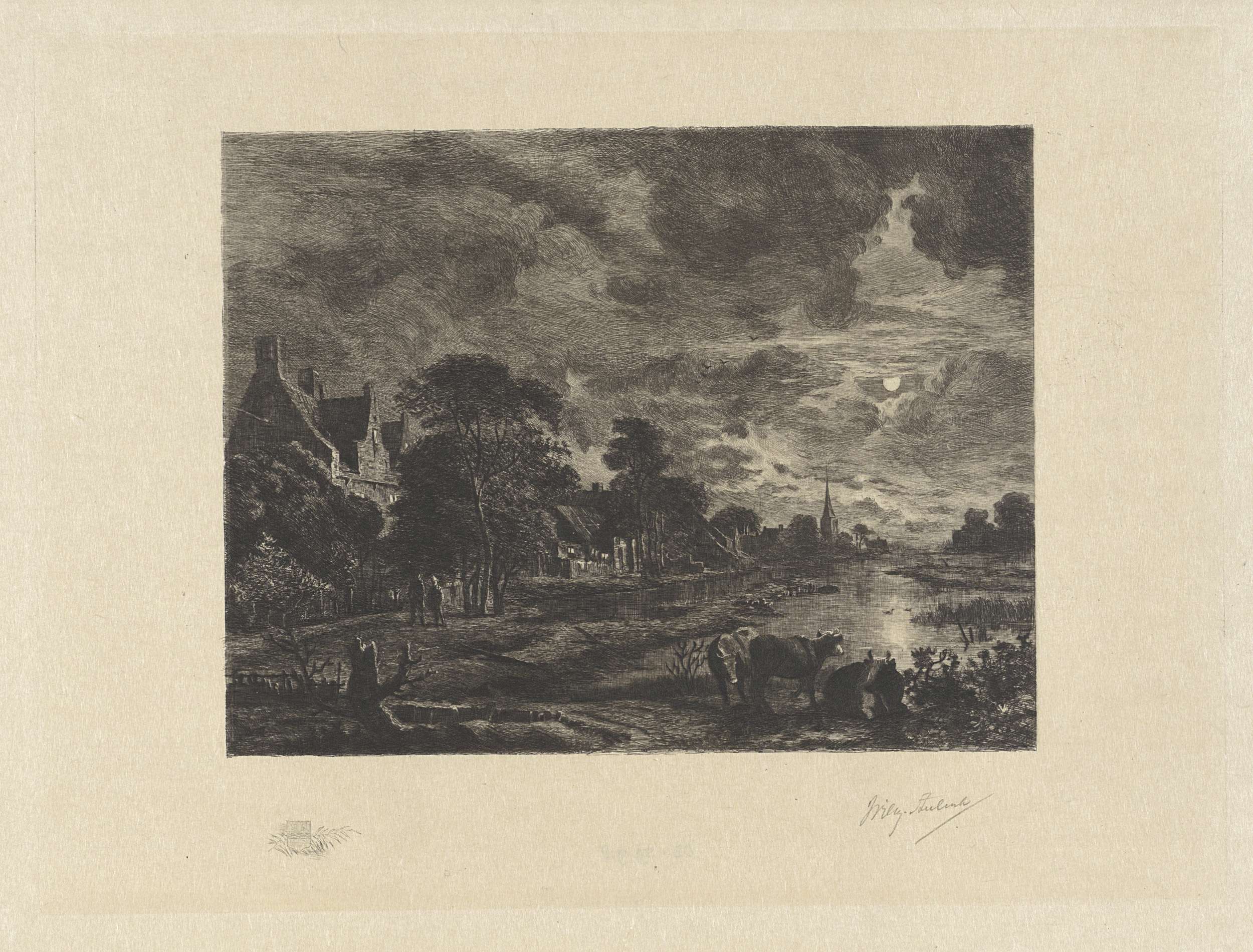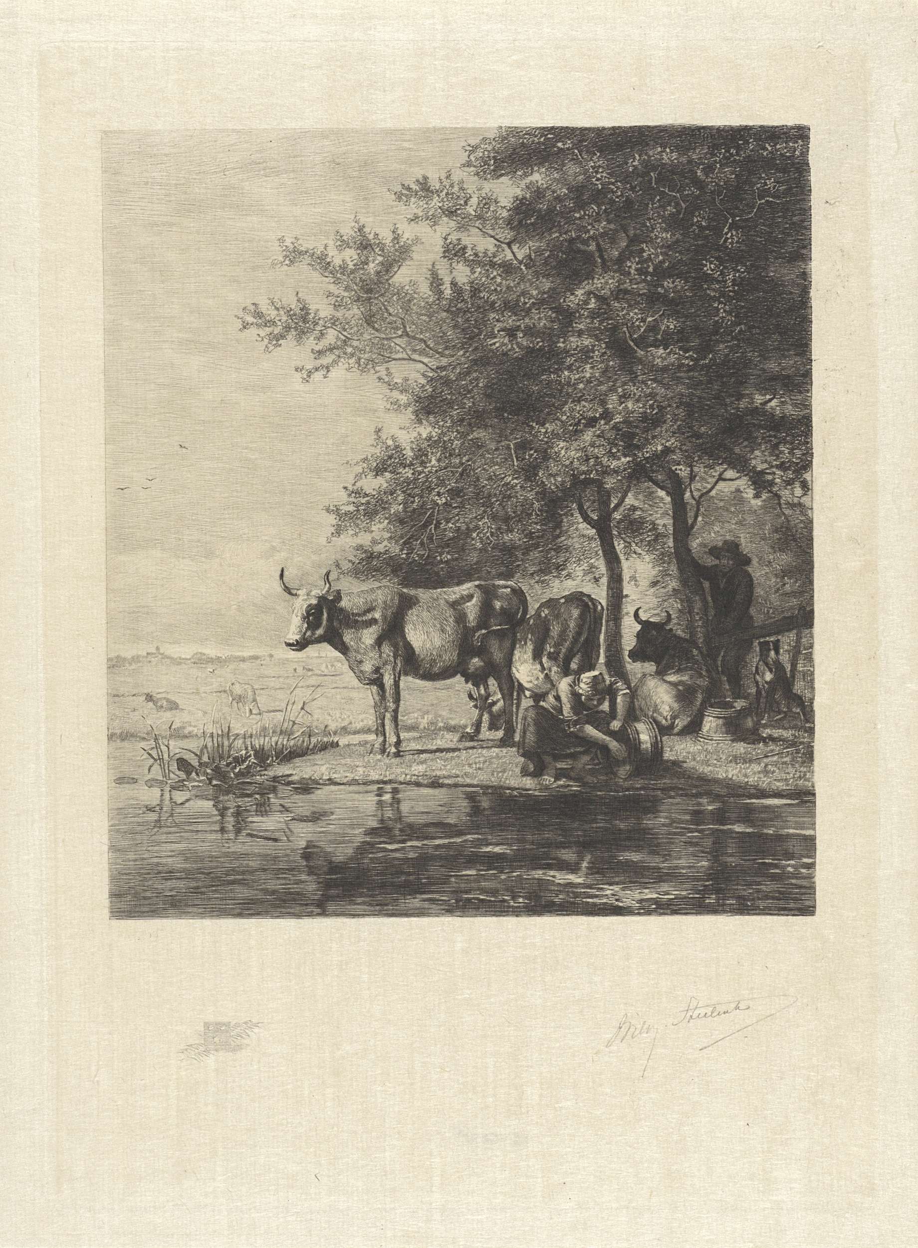 Landschap met koeien en een vrouw die een emmer wast
