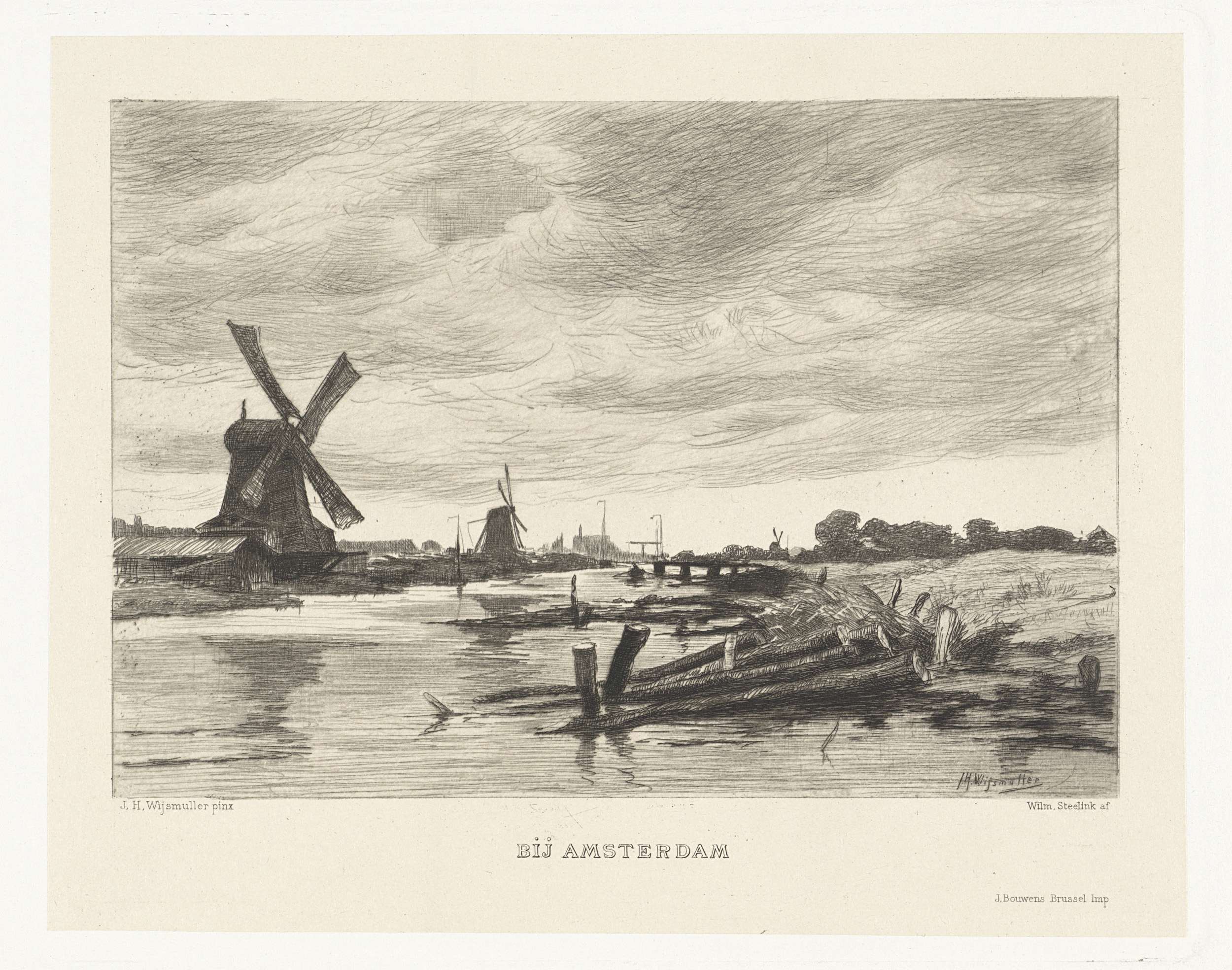 Landschap met molens langs een vaart