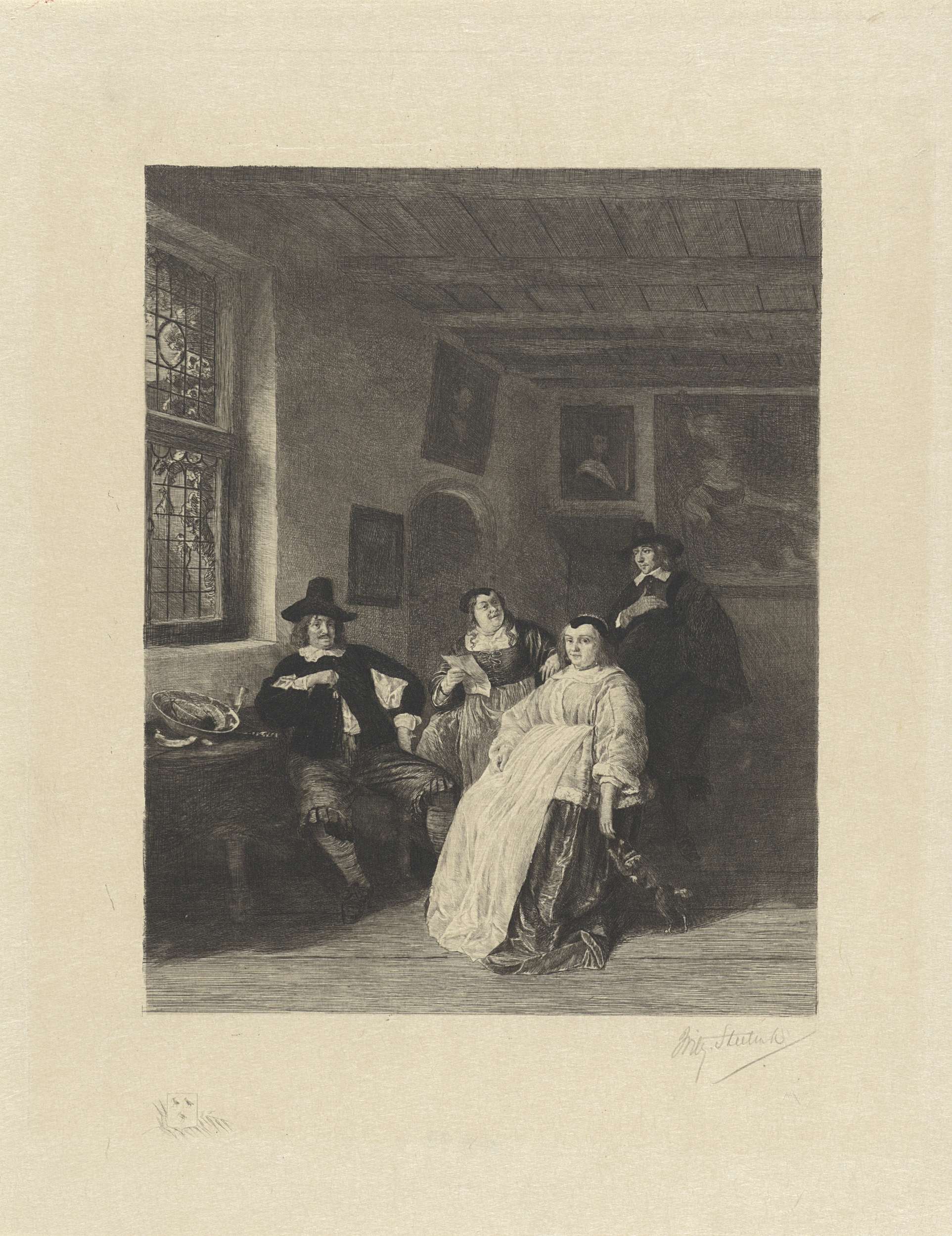 Portret van de familie de Goyer en Adriaen van Ostade