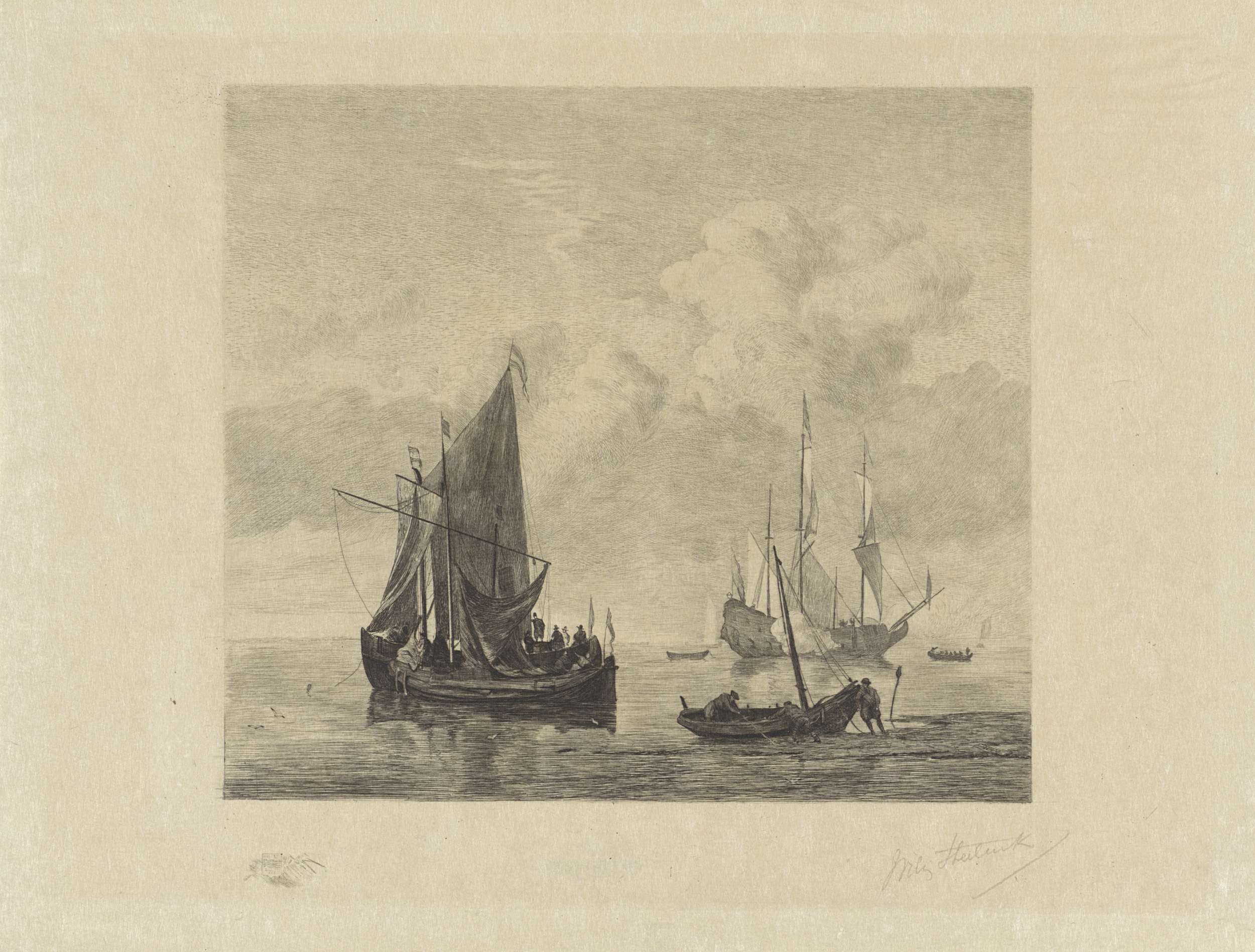 Zeilschepen op kalme zee