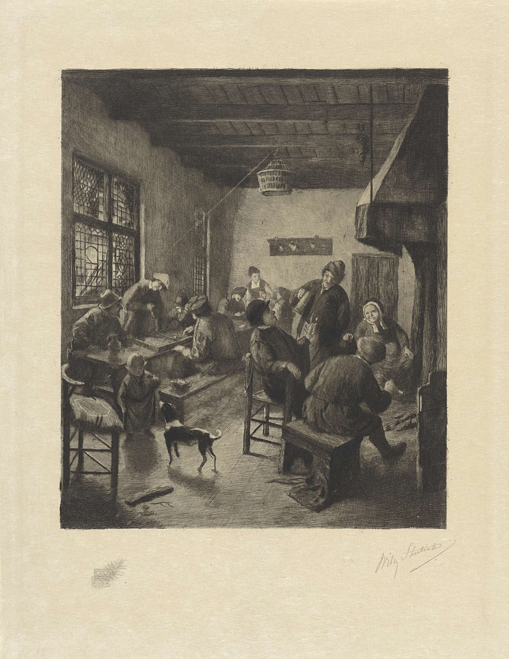 Herberginterieur met rokers