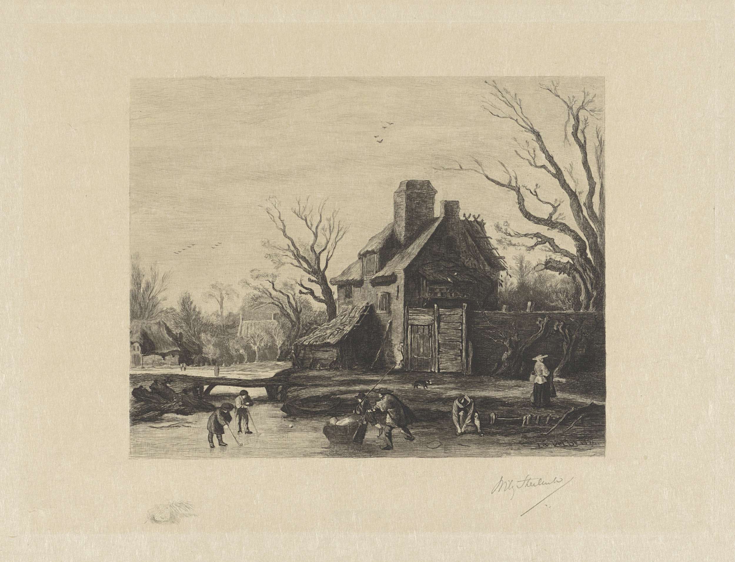 Wintergezicht met ijsvermaak