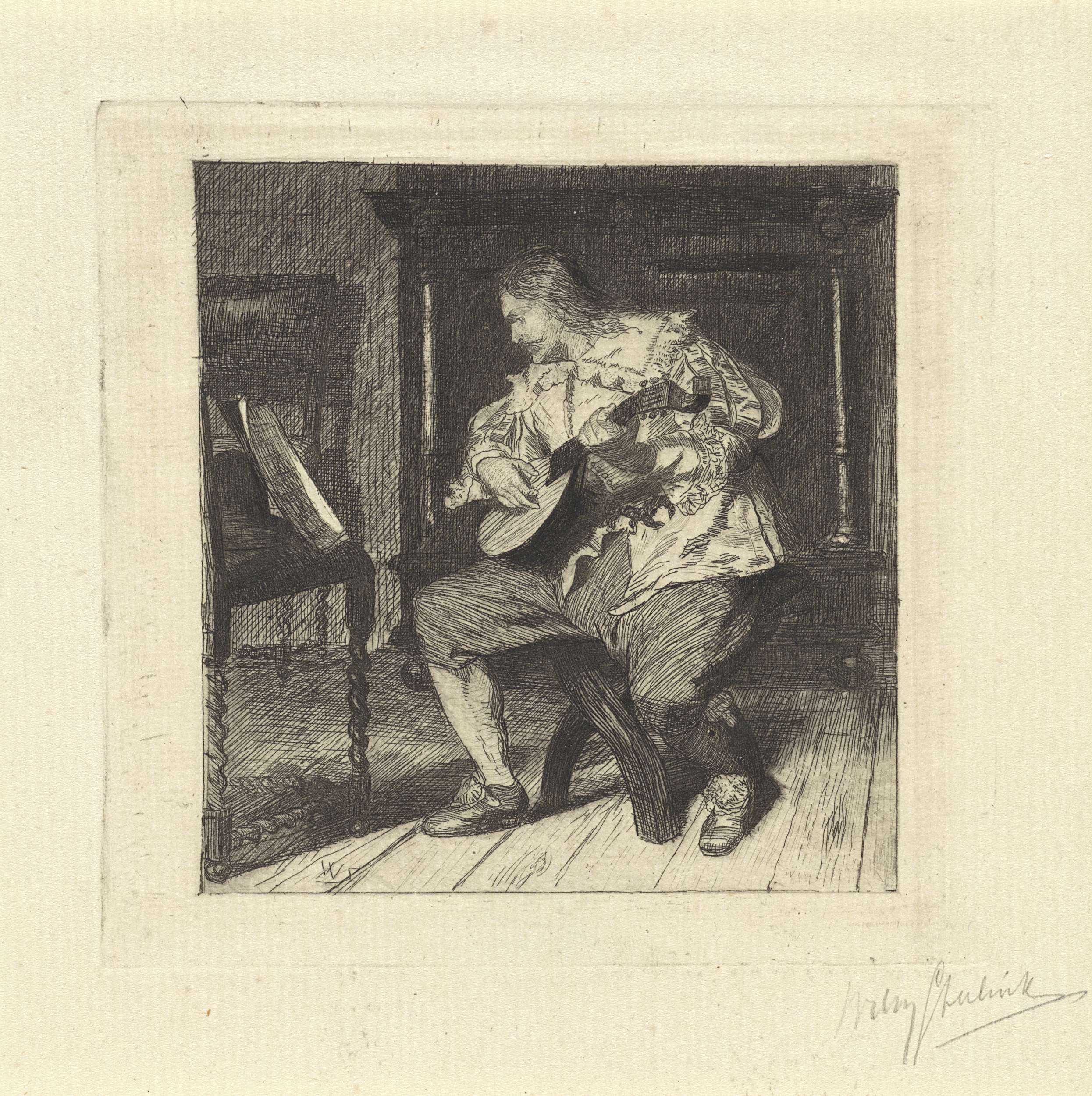 Luitspeler spelend van bladmuziek