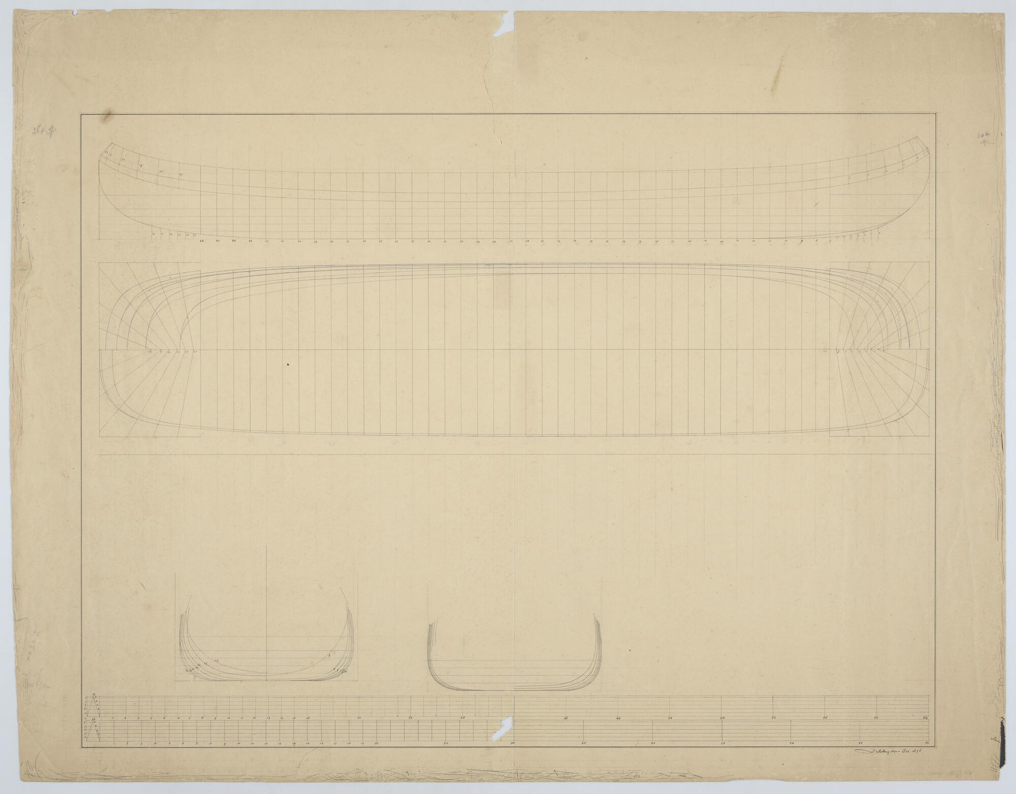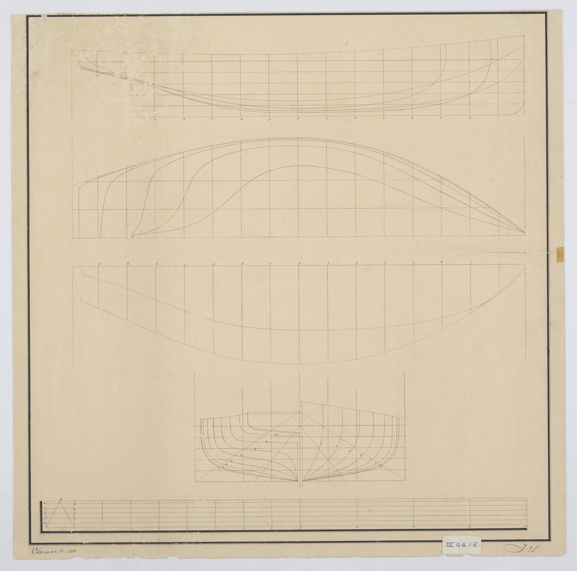 Lijnenplan van het zeiljacht 'Voorwaarts', 1885