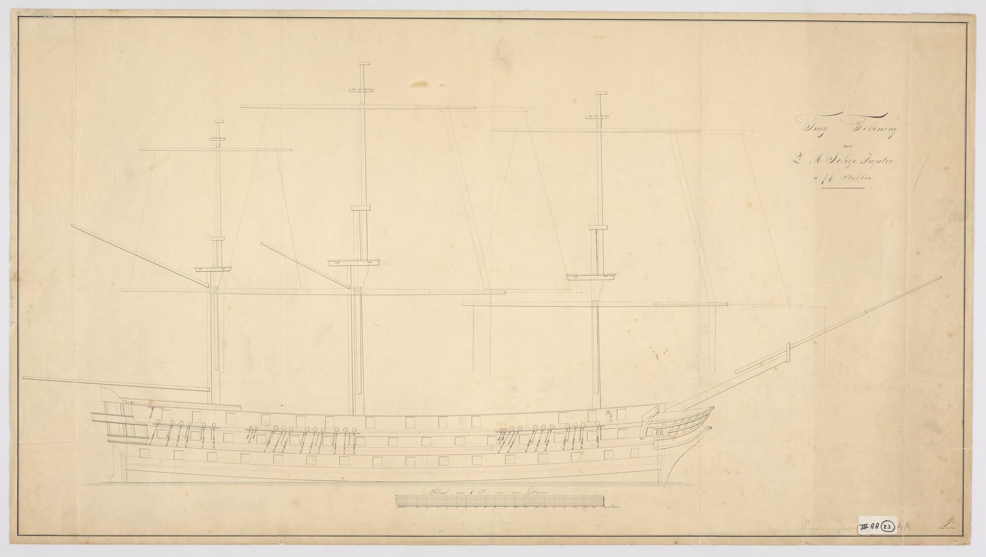 Tuigplan van het linieschip 'Jupiter' van 74 stukken