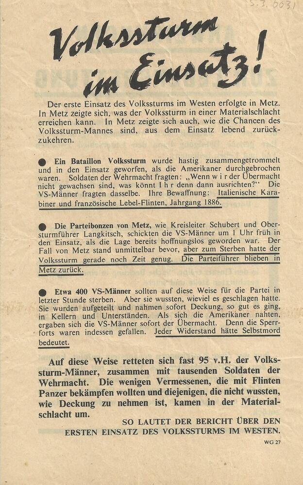 Pamflet: "Volkssturm im Einsatz" (WG 27)