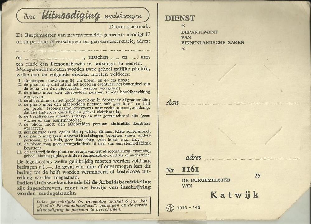 Dienst Departement van Binnenlandsche Zaken, te Katw...