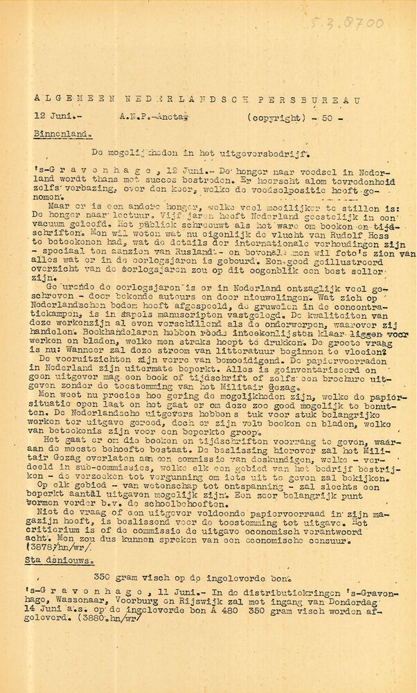 Algemeen Nederlandsch Persbureau, mededelingen, Amst...