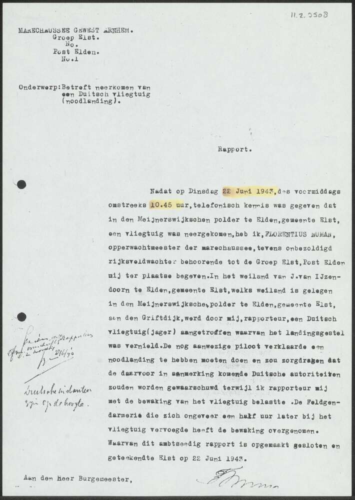 Proces-Verbaal Marechaussee gewest Arnhem Groep Elst...