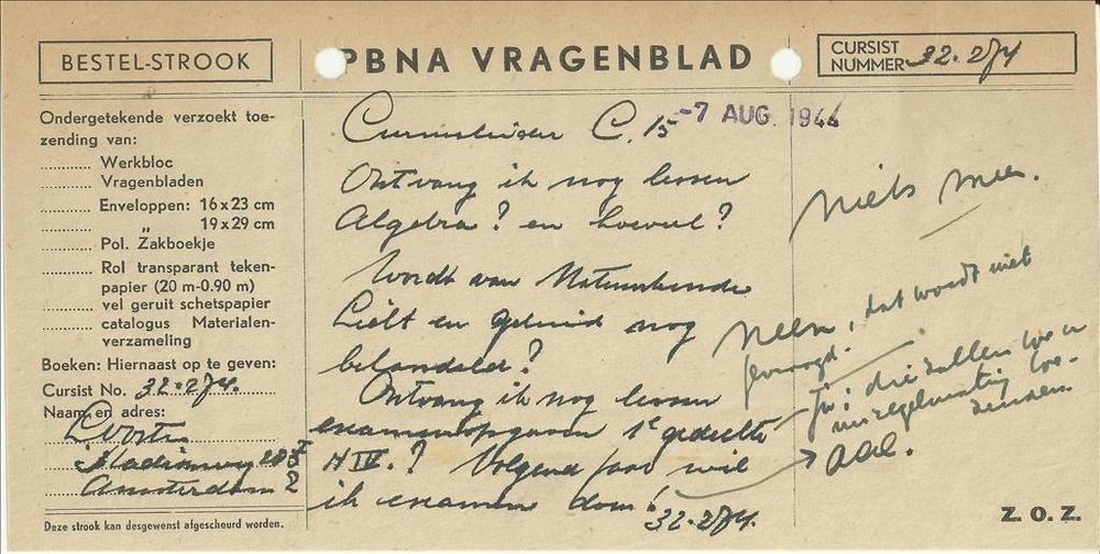Brief in enveloppe. 16 juli 1944. Aan den heer G.C. ...